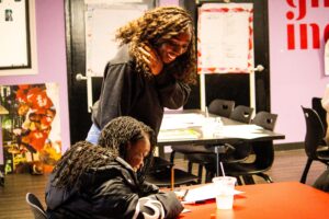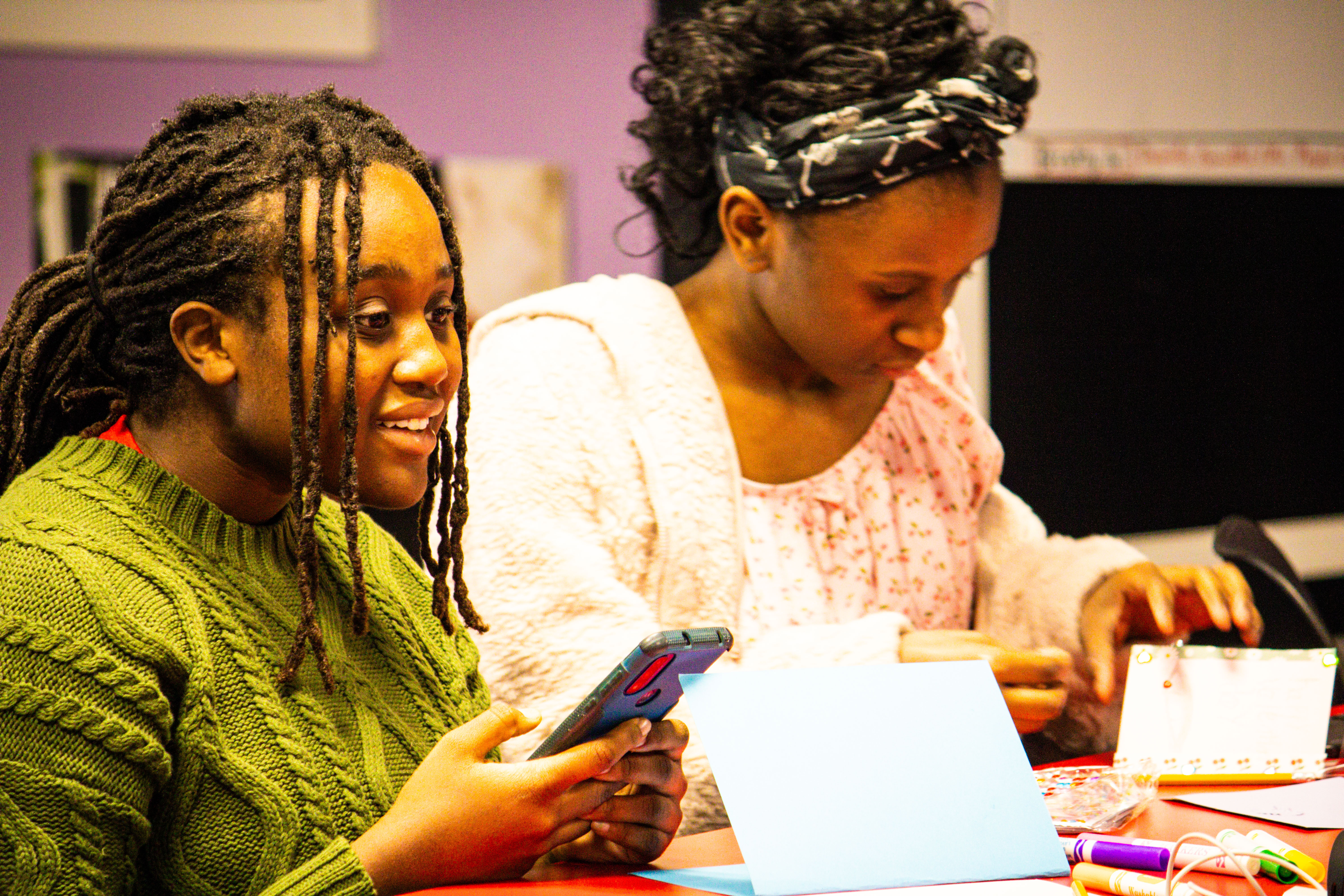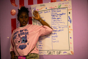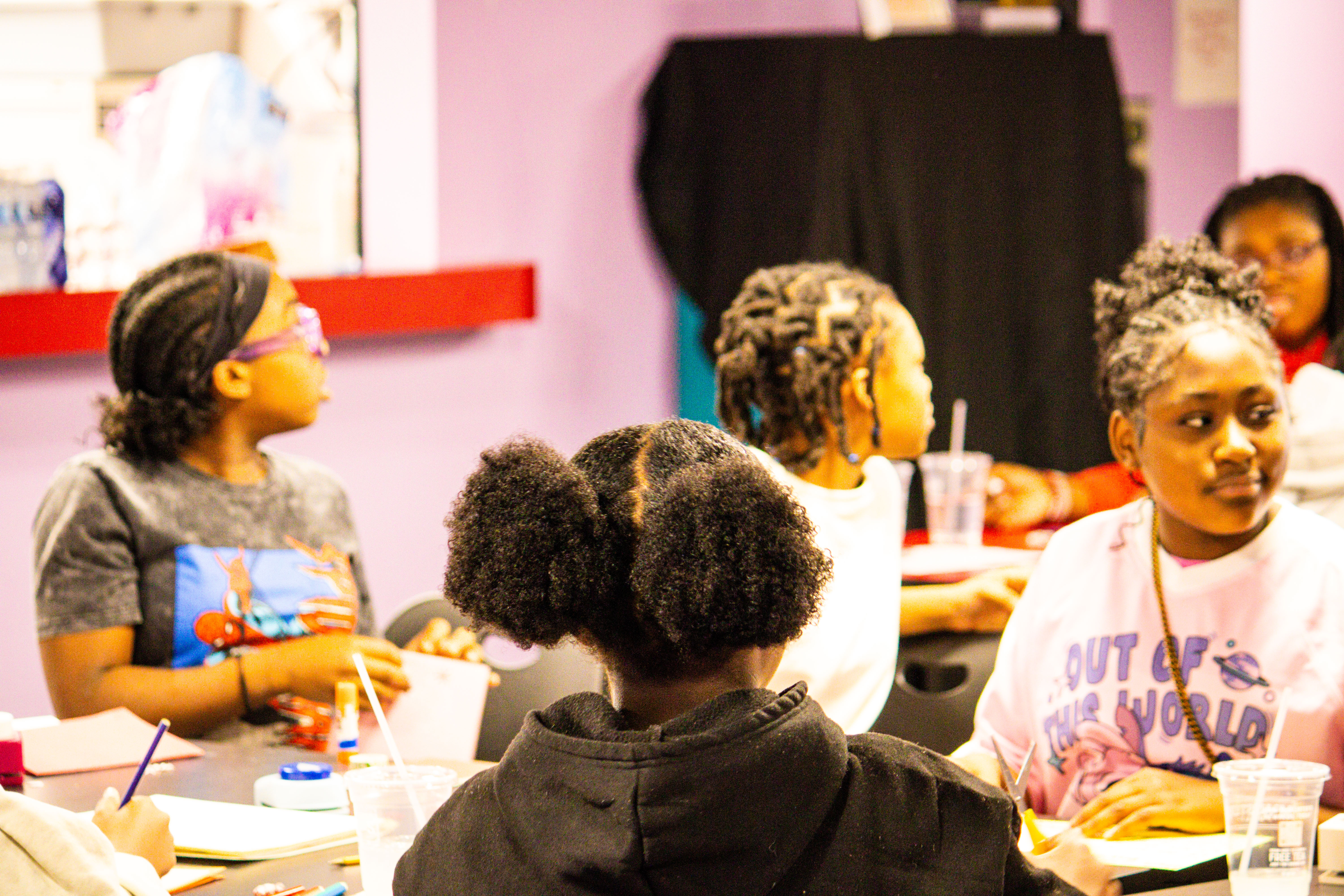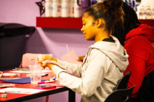 The session concluded with a powerful exercise in self-love: creating self-affirmation Valentine’s Day cards. As 7th-grader Kadence shared, “We wrote what we loved about ourselves,” reinforcing the importance of speaking positivity over their own identities before looking to the screen.